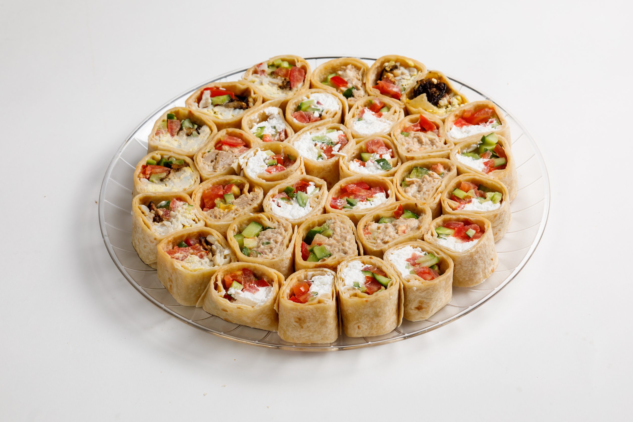 נגיסי סושי טורטייה מגולגלת במגוון טעמים: גואקמולי ,ממרח שמנת וסלומון מעושן ,ממרח סלטונה, ממרח ביצים,סביח, ממרח פסטו גבינת פטה ופלפל קלוי, ממרח עגבניות מיובשות צפתית ופלפל קלוי.